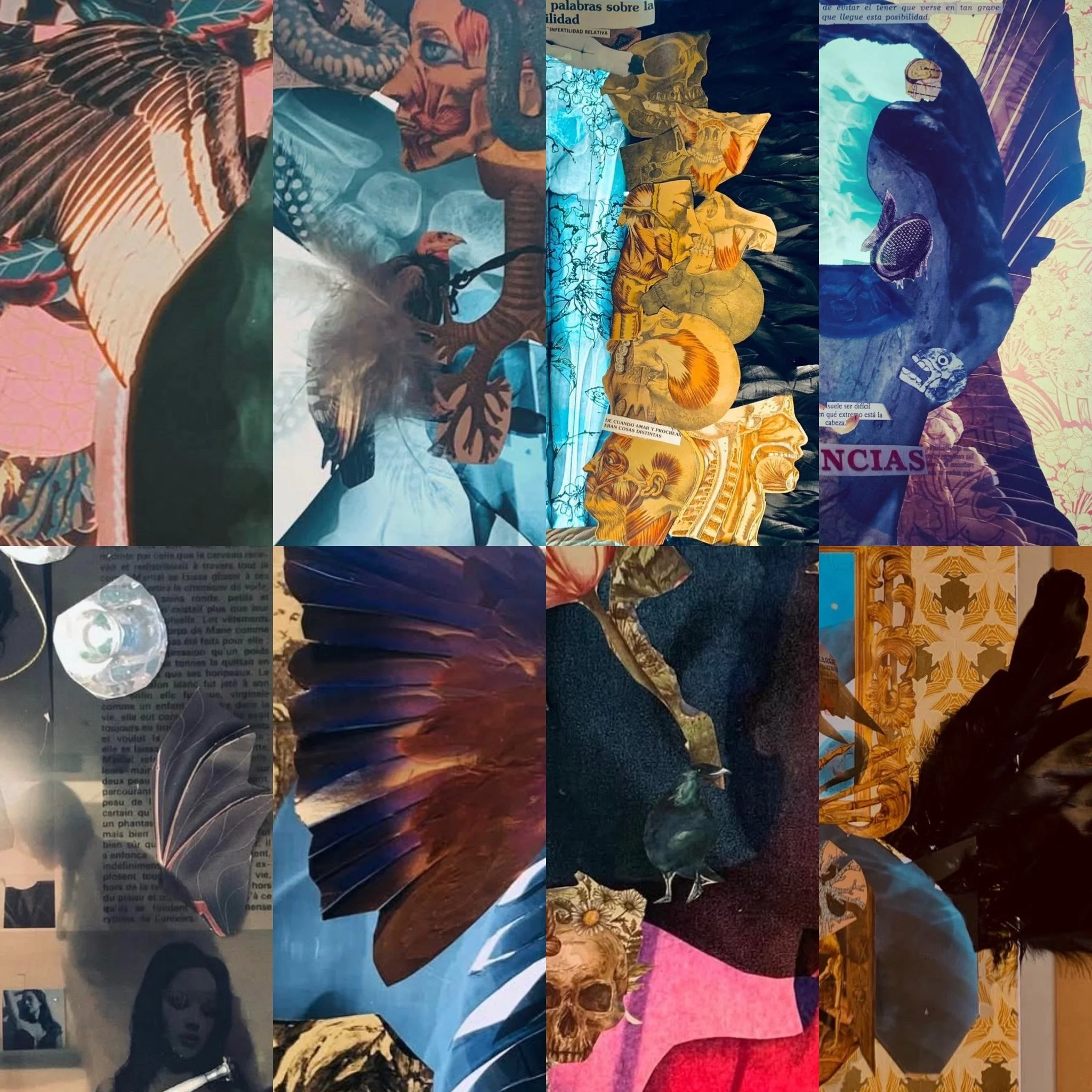 ES: El buitre es el guardián de mi madurez creativa. Mi predilección nace de la elegancia de su plumaje negro y de su función biológica: alimentarse de lo que otros consideran desecho para devolverle el equilibrio a la vida. Representa una etapa de plenitud donde el dolor del pasado ya no es una carga, sino el sustento para alcanzar la cúspide de la cadena alimentaria emocional. Me fascina su caminar juguetón: un recordatorio de que se puede ser majestuoso en el aire y terrenal en el suelo. El buitre no juzga la carroña; la transmuta. Al igual que intervengo radiografías para extraer belleza, el buitre devora el final para dar un nuevo comienzo. Es la síntesis de quien ha digerido sus propias sombras y ahora vuela sobre ellas con la serenidad del observador.